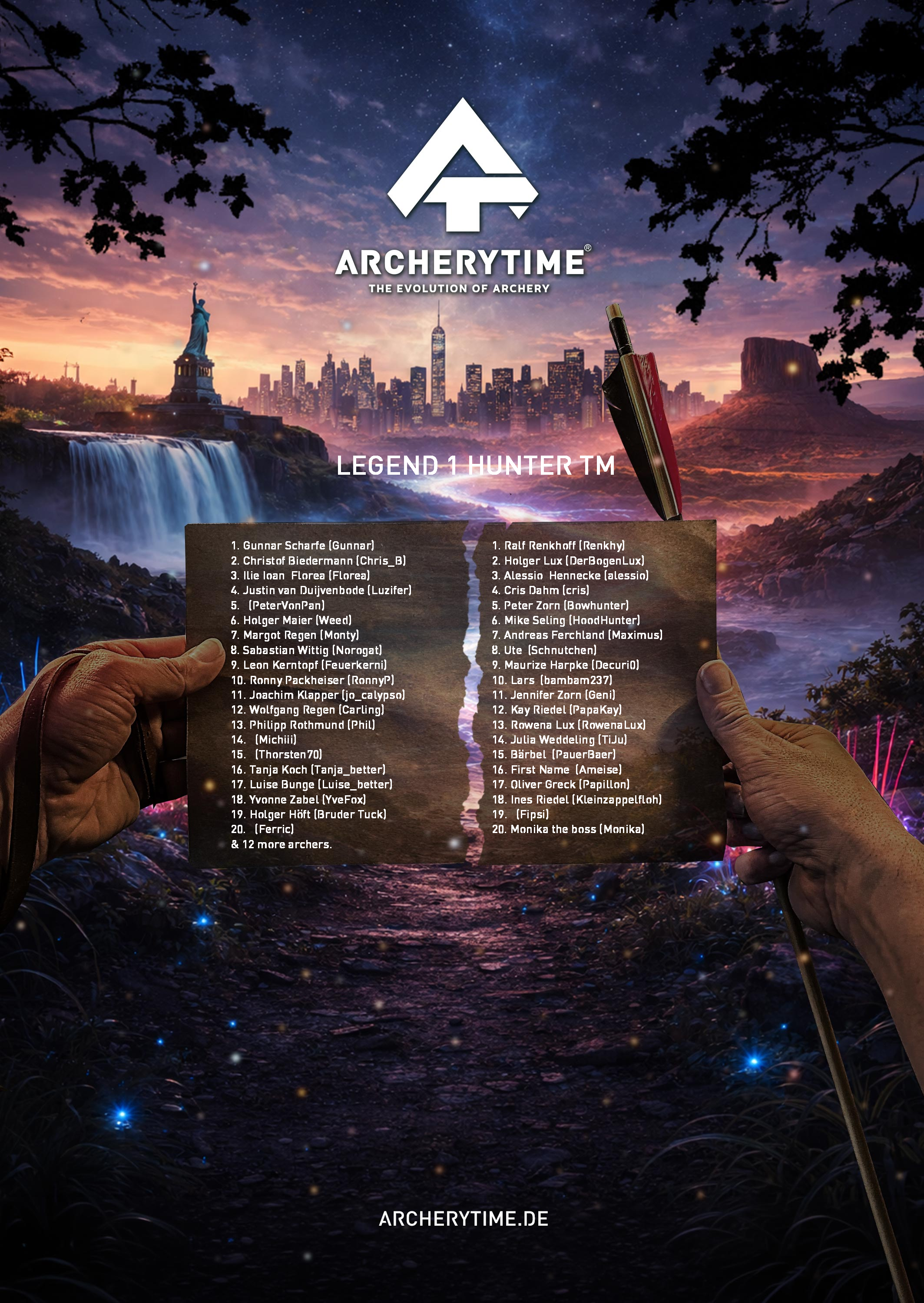 This poster showcases the top 20 archers who conquered the Legend tournament. Their names and scores are immortalized in stone – a tribute to skill, dedication and the spirit of archery.