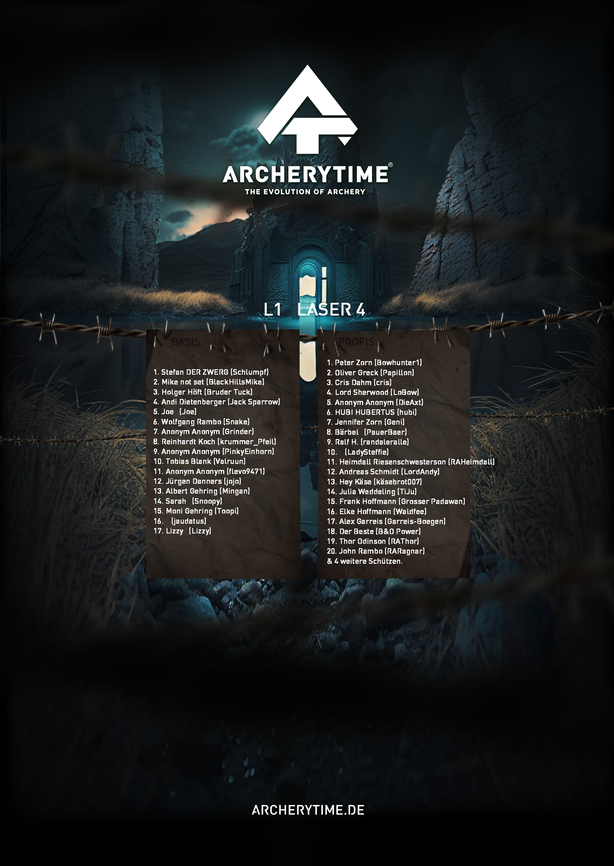 This poster showcases the top 20 archers who conquered the Legend tournament. Their names and scores are immortalized in stone – a tribute to skill, dedication and the spirit of archery.