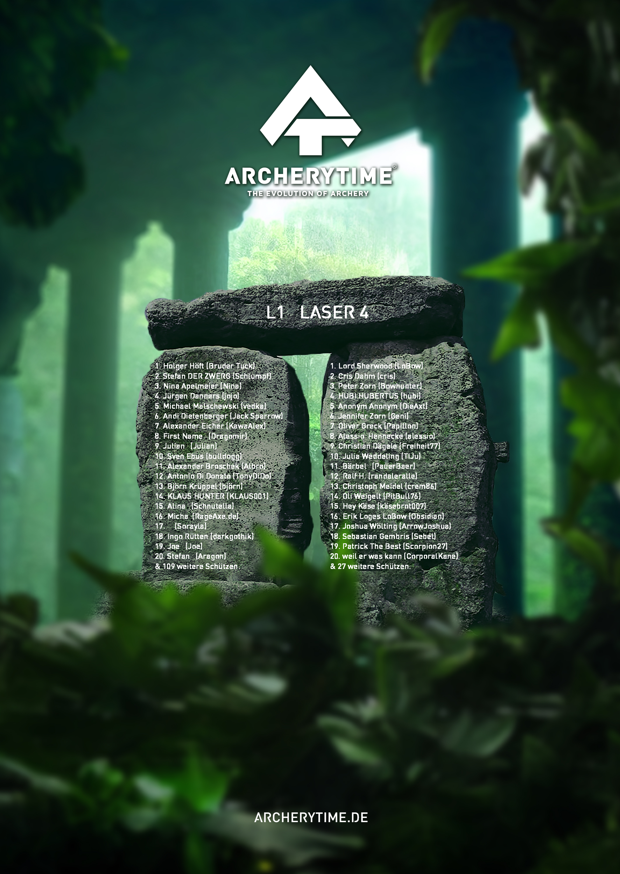 This poster showcases the top 20 archers who conquered the Legend tournament. Their names and scores are immortalized in stone – a tribute to skill, dedication and the spirit of archery.