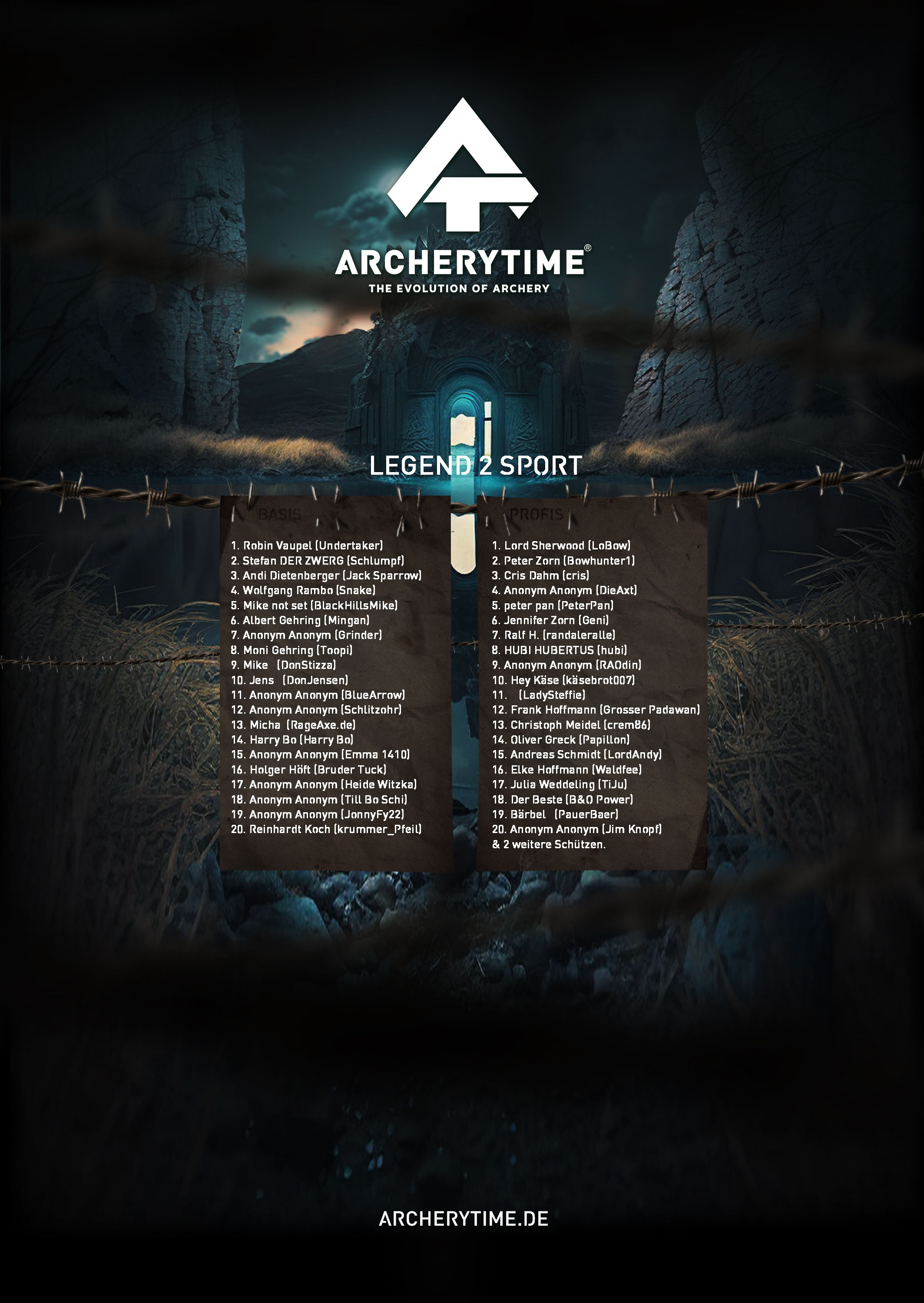 This poster showcases the top 20 archers who conquered the Legend tournament. Their names and scores are immortalized in stone – a tribute to skill, dedication and the spirit of archery.