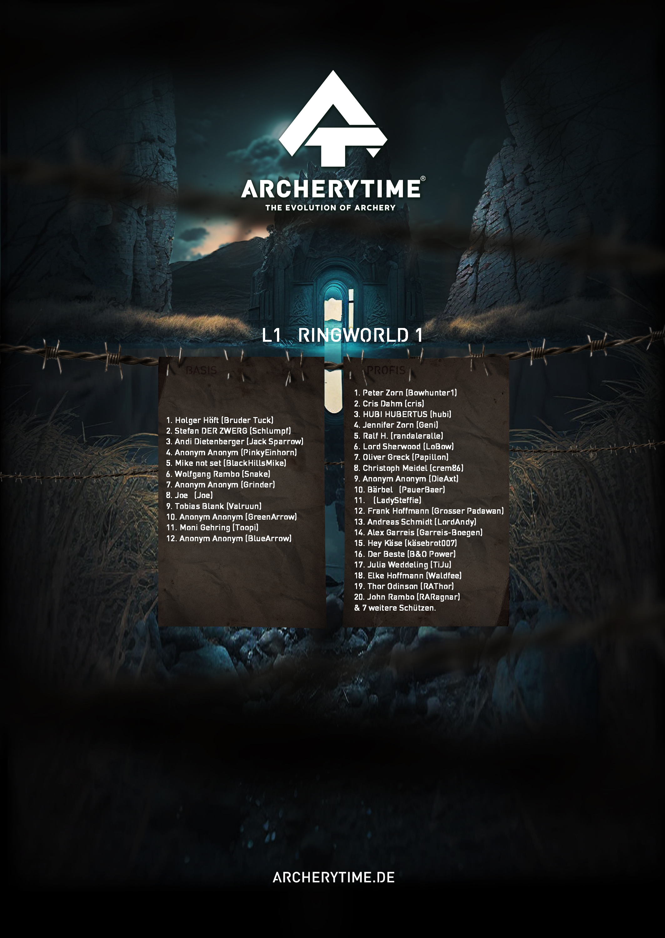This poster showcases the top 20 archers who conquered the Legend tournament. Their names and scores are immortalized in stone – a tribute to skill, dedication and the spirit of archery.