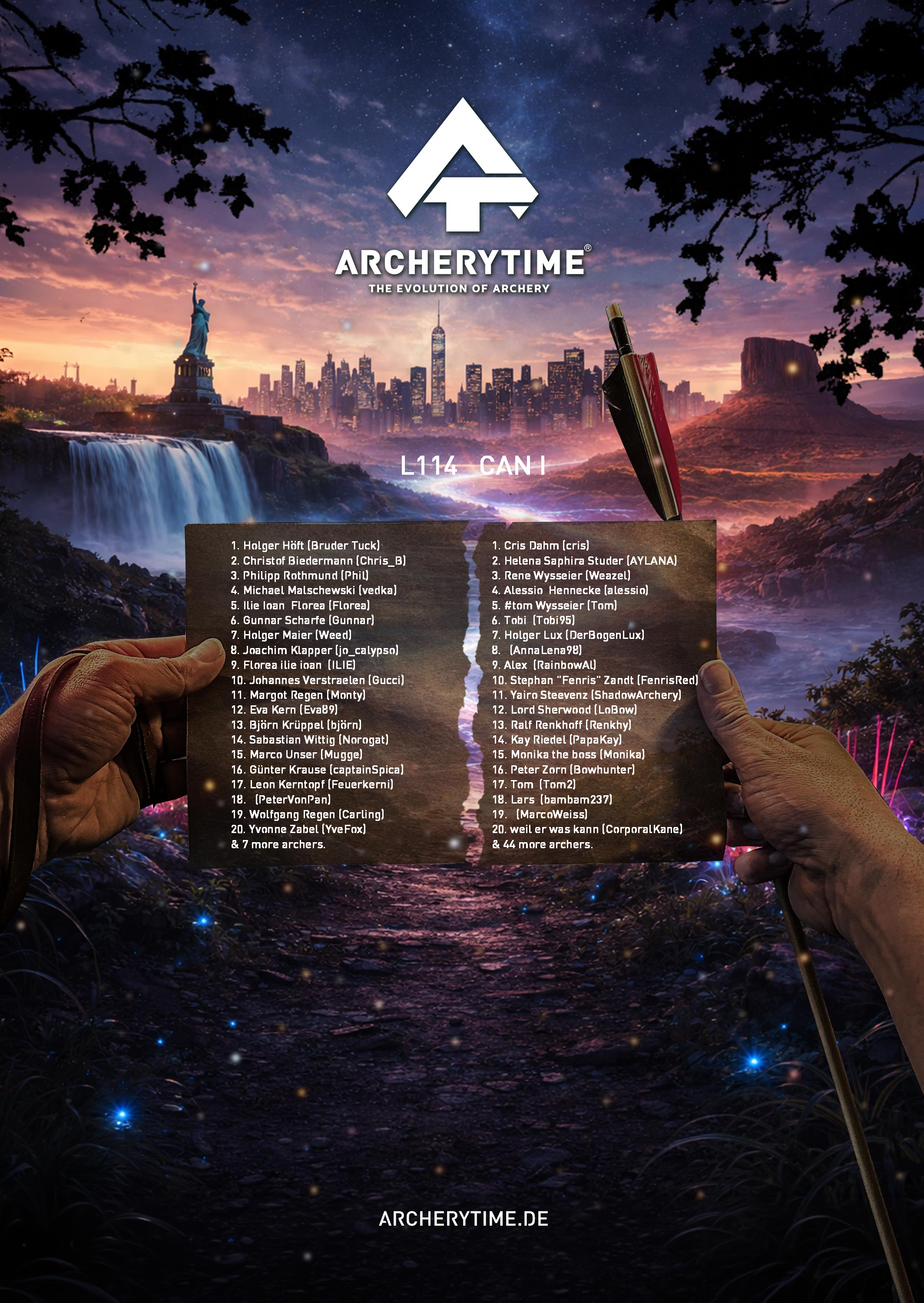 This poster showcases the top 20 archers who conquered the Legend tournament. Their names and scores are immortalized in stone – a tribute to skill, dedication and the spirit of archery.