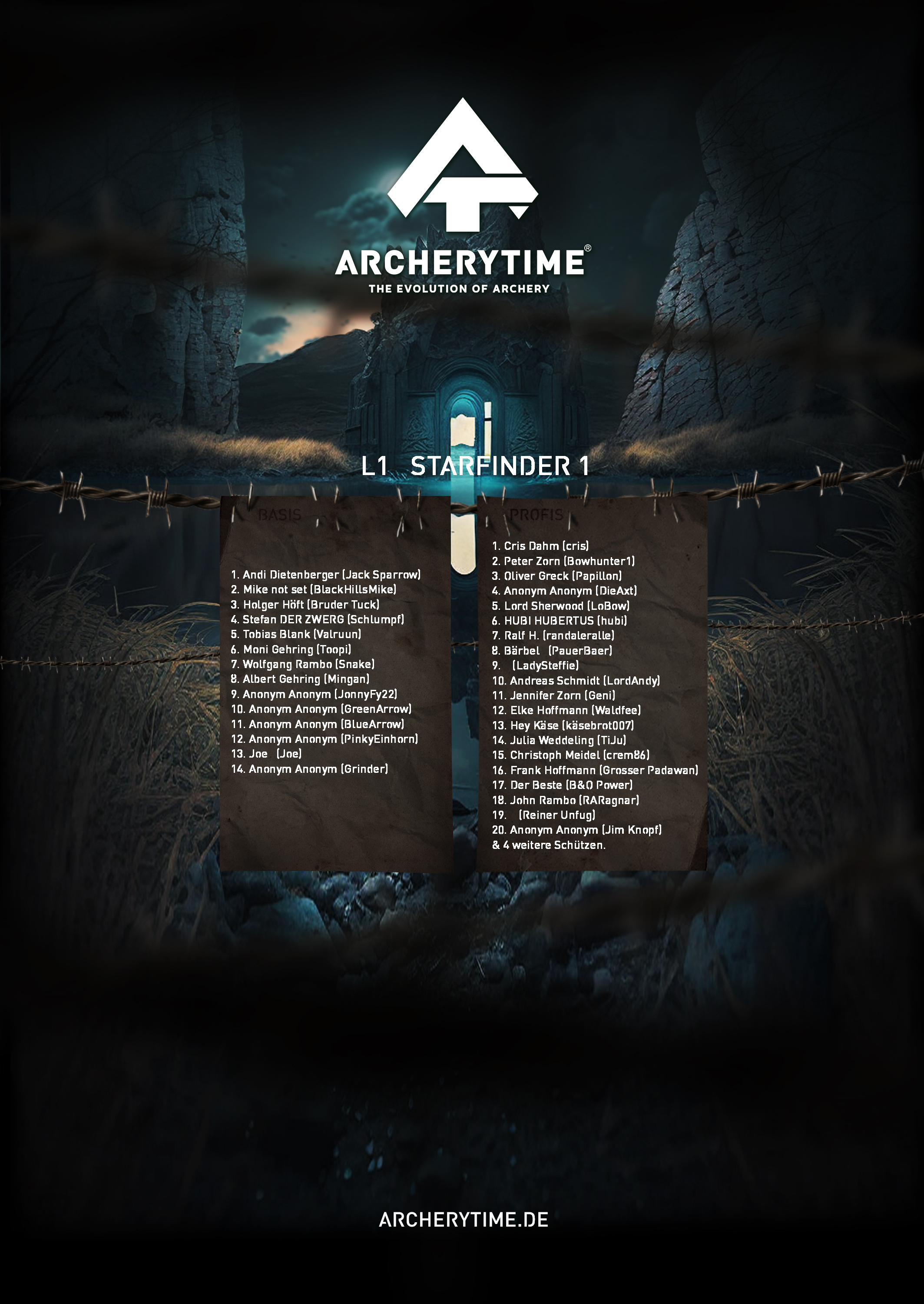This poster showcases the top 20 archers who conquered the Legend tournament. Their names and scores are immortalized in stone – a tribute to skill, dedication and the spirit of archery.