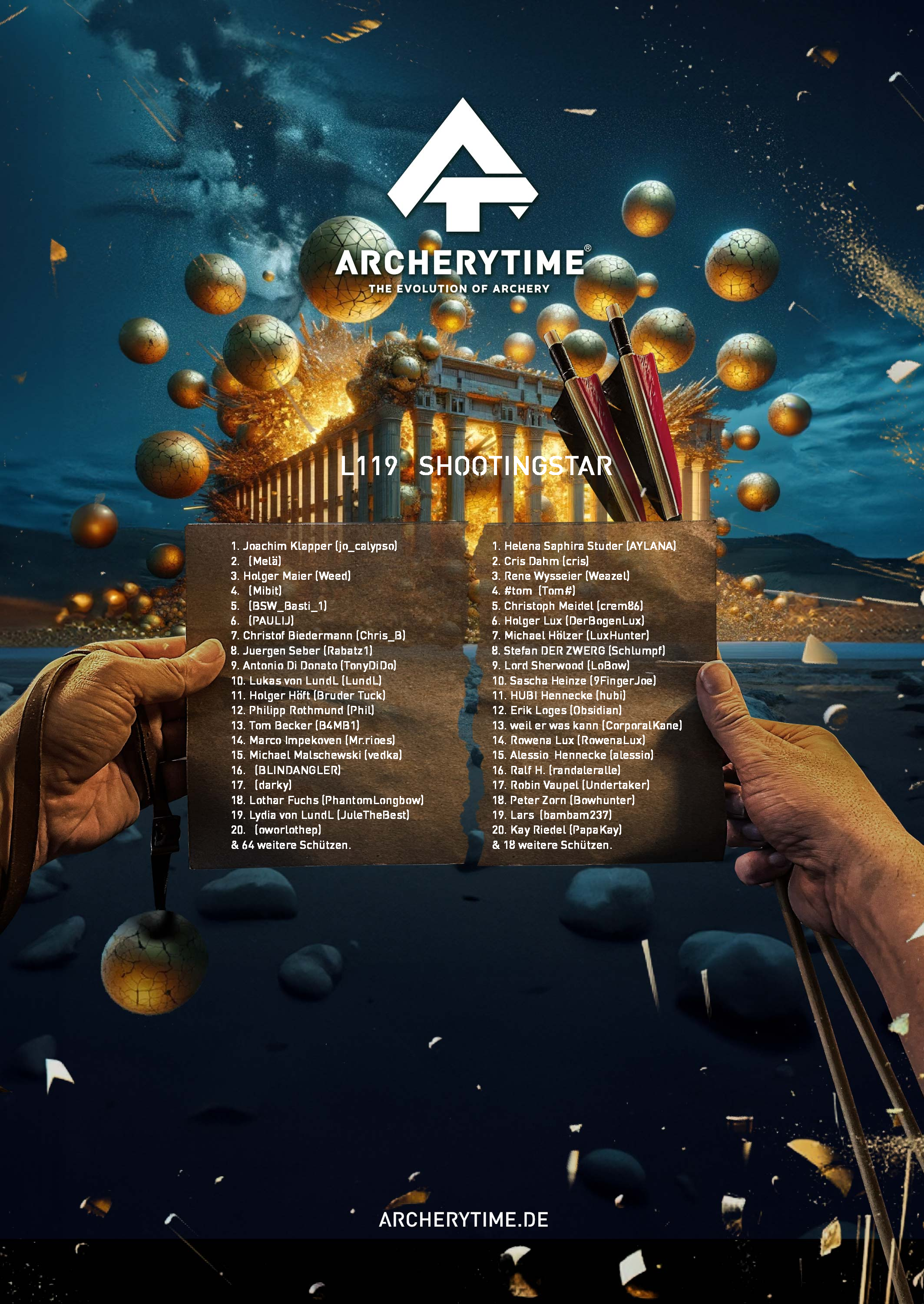 This poster showcases the top 20 archers who conquered the Legend tournament. Their names and scores are immortalized in stone – a tribute to skill, dedication and the spirit of archery.