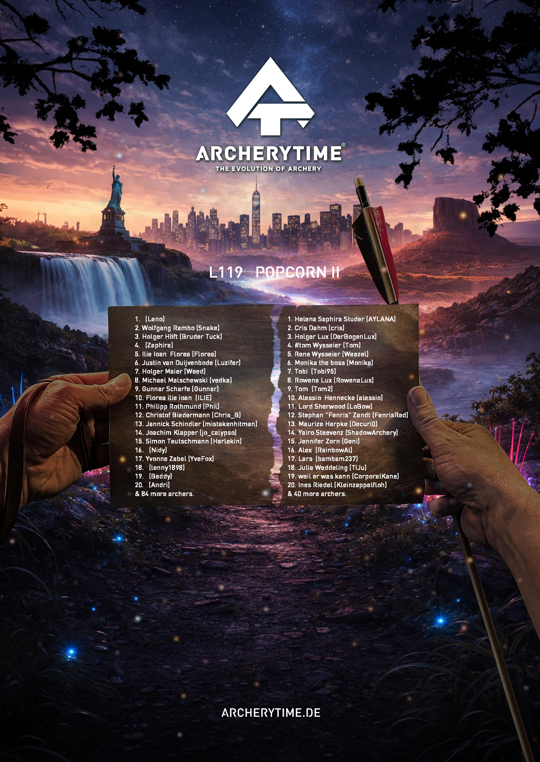 This poster showcases the top 20 archers who conquered the Legend tournament. Their names and scores are immortalized in stone – a tribute to skill, dedication and the spirit of archery.