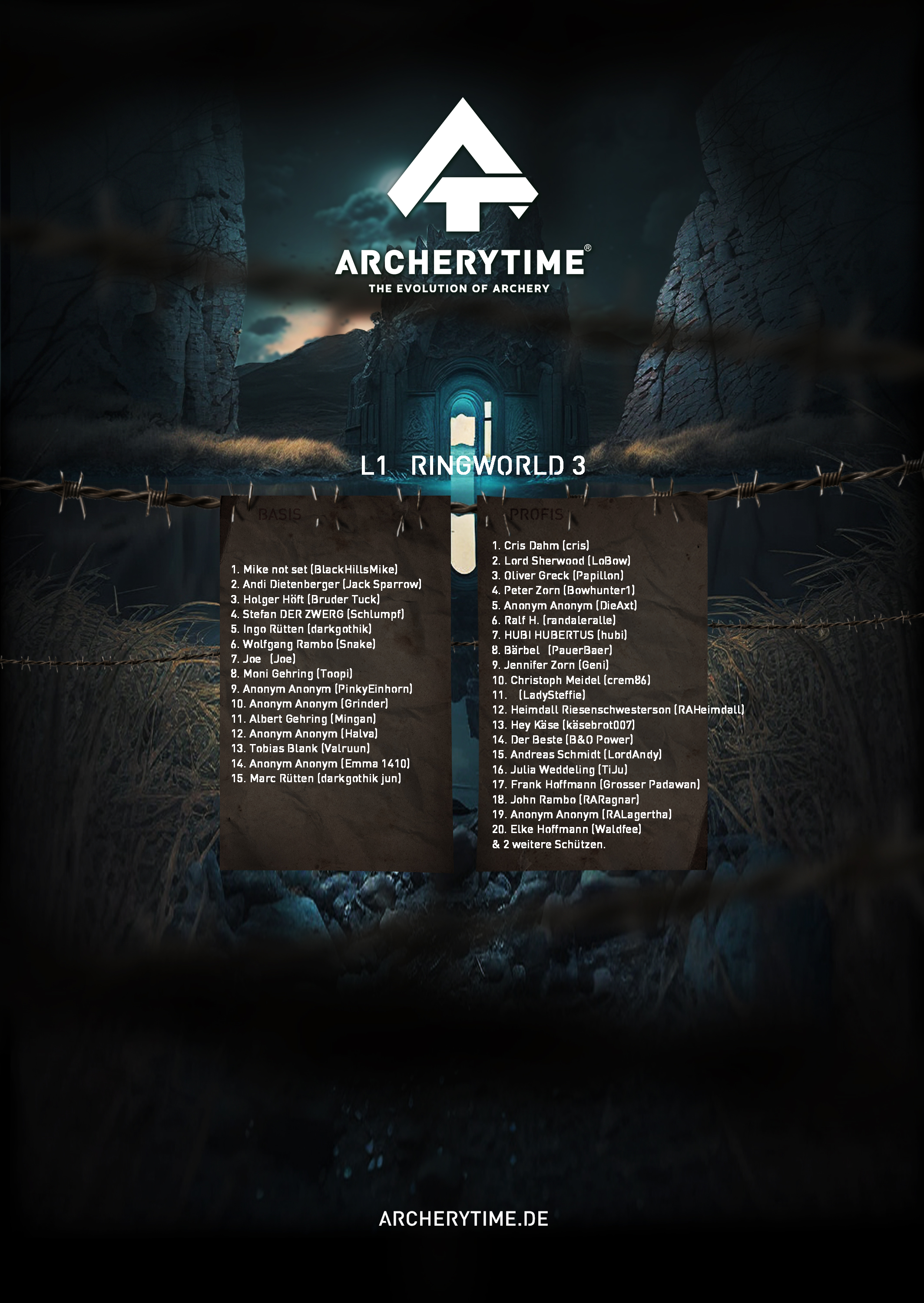This poster showcases the top 20 archers who conquered the Legend tournament. Their names and scores are immortalized in stone – a tribute to skill, dedication and the spirit of archery.