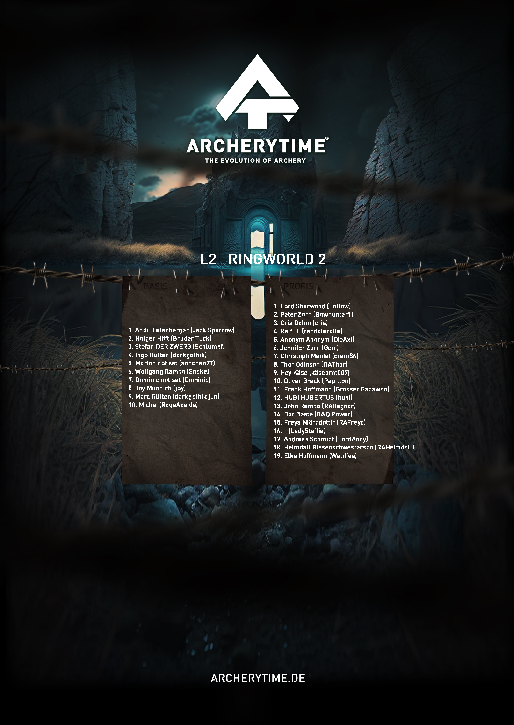 Gleich einem alten Artefakt aus vergangenen Tagen, zeigt das Poster in monumentaler Schönheit die 20 besten Bogenschützen, die je das Legend Turnier bestanden haben. In steinernen Schriftzügen sind ihre Namen und Siege verewigt und erzählen von unvorstellbaren Kämpfen und unglaublichen Leistungen.