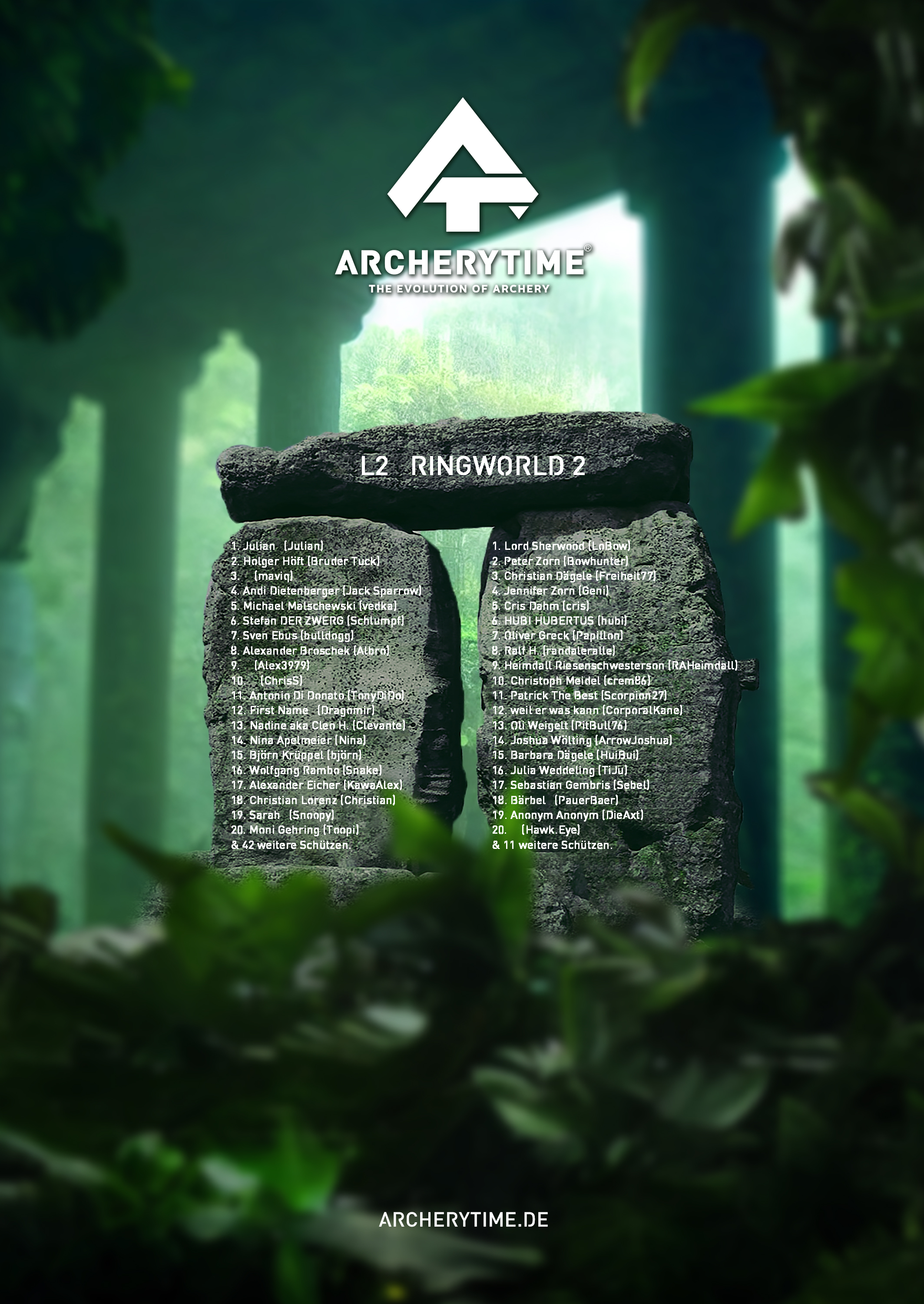 This poster showcases the top 20 archers who conquered the Legend tournament. Their names and scores are immortalized in stone – a tribute to skill, dedication and the spirit of archery.