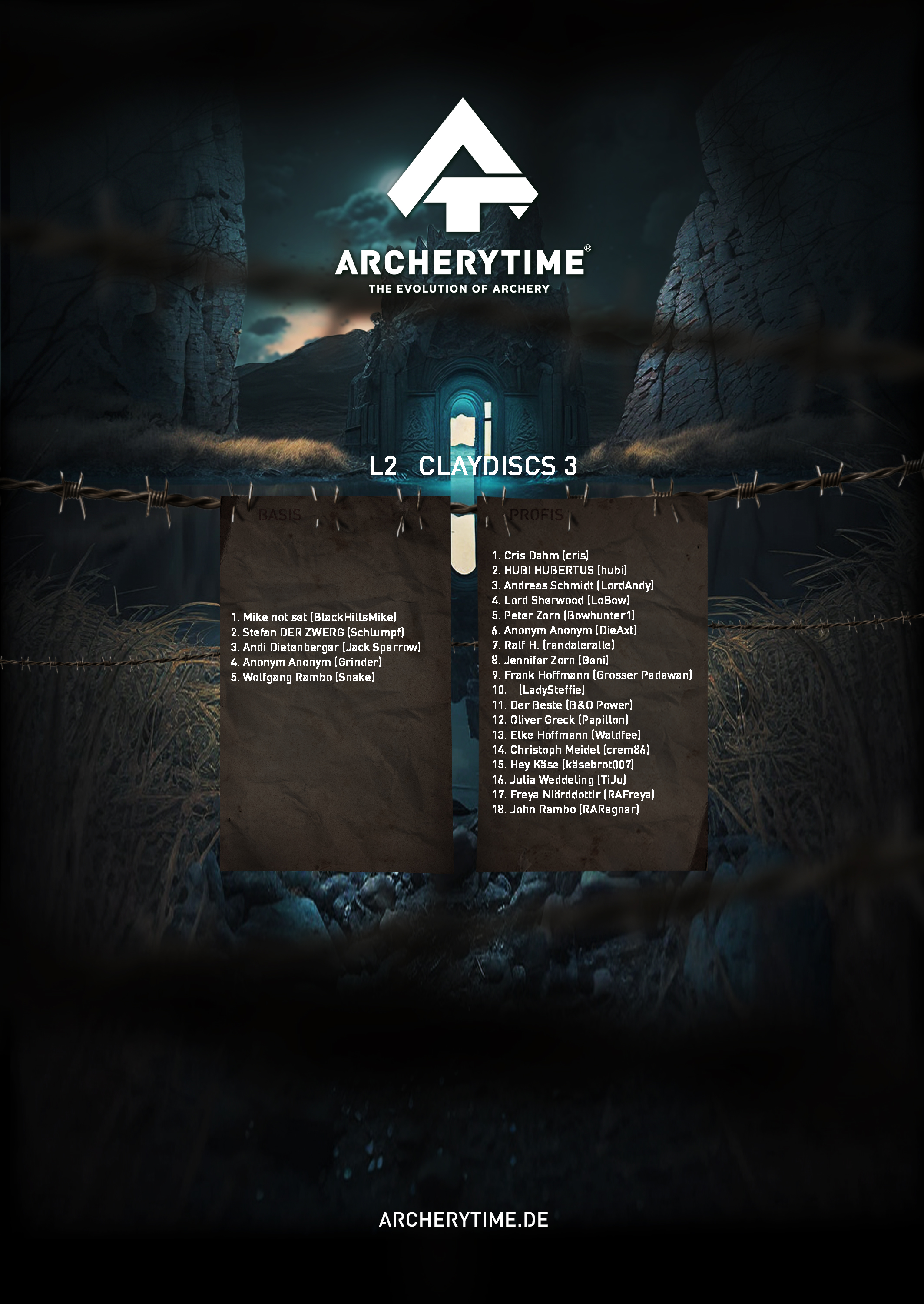 Gleich einem alten Artefakt aus vergangenen Tagen, zeigt das Poster in monumentaler Schönheit die 20 besten Bogenschützen, die je das Legend Turnier bestanden haben. In steinernen Schriftzügen sind ihre Namen und Siege verewigt und erzählen von unvorstellbaren Kämpfen und unglaublichen Leistungen.