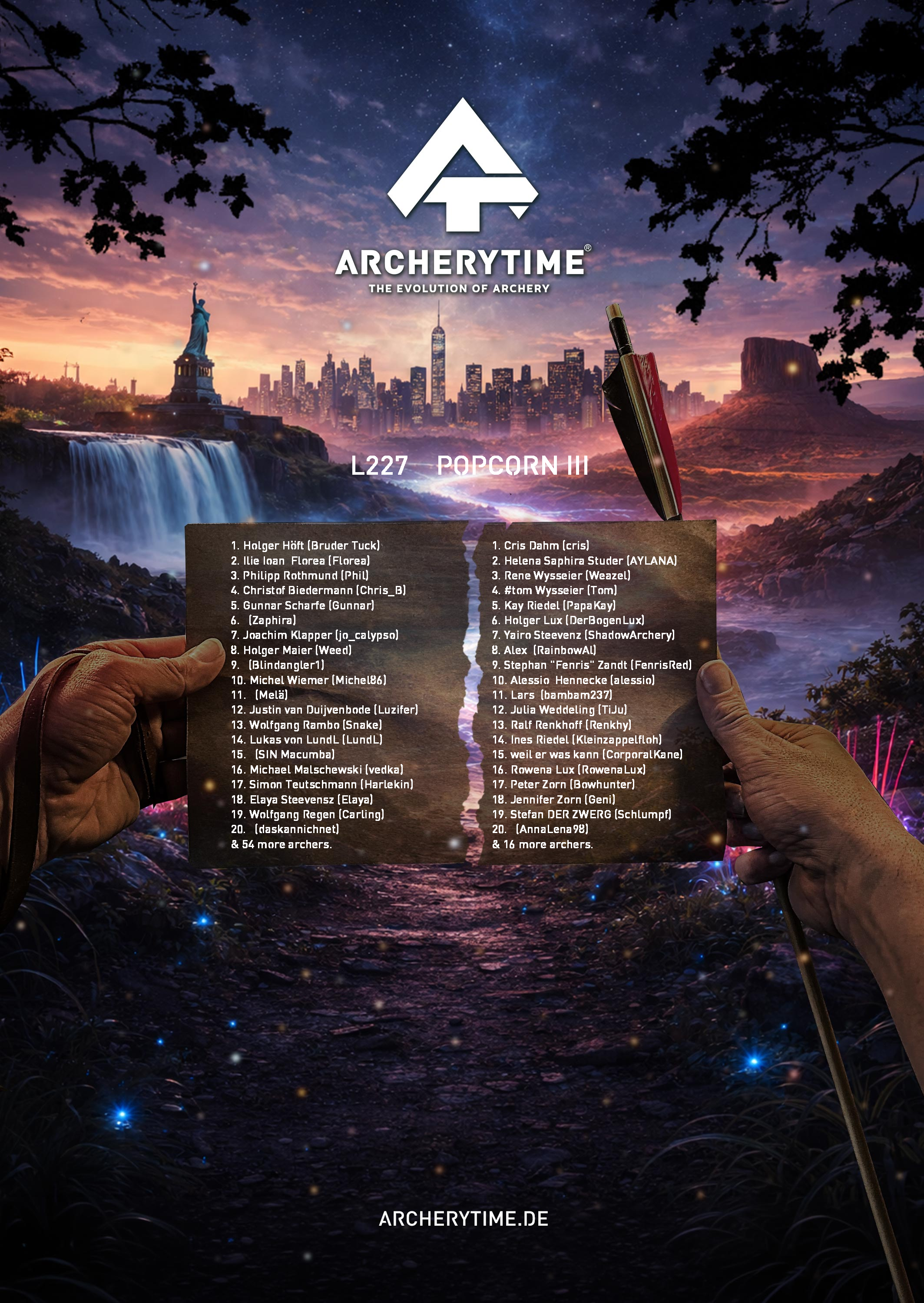 This poster showcases the top 20 archers who conquered the Legend tournament. Their names and scores are immortalized in stone – a tribute to skill, dedication and the spirit of archery.