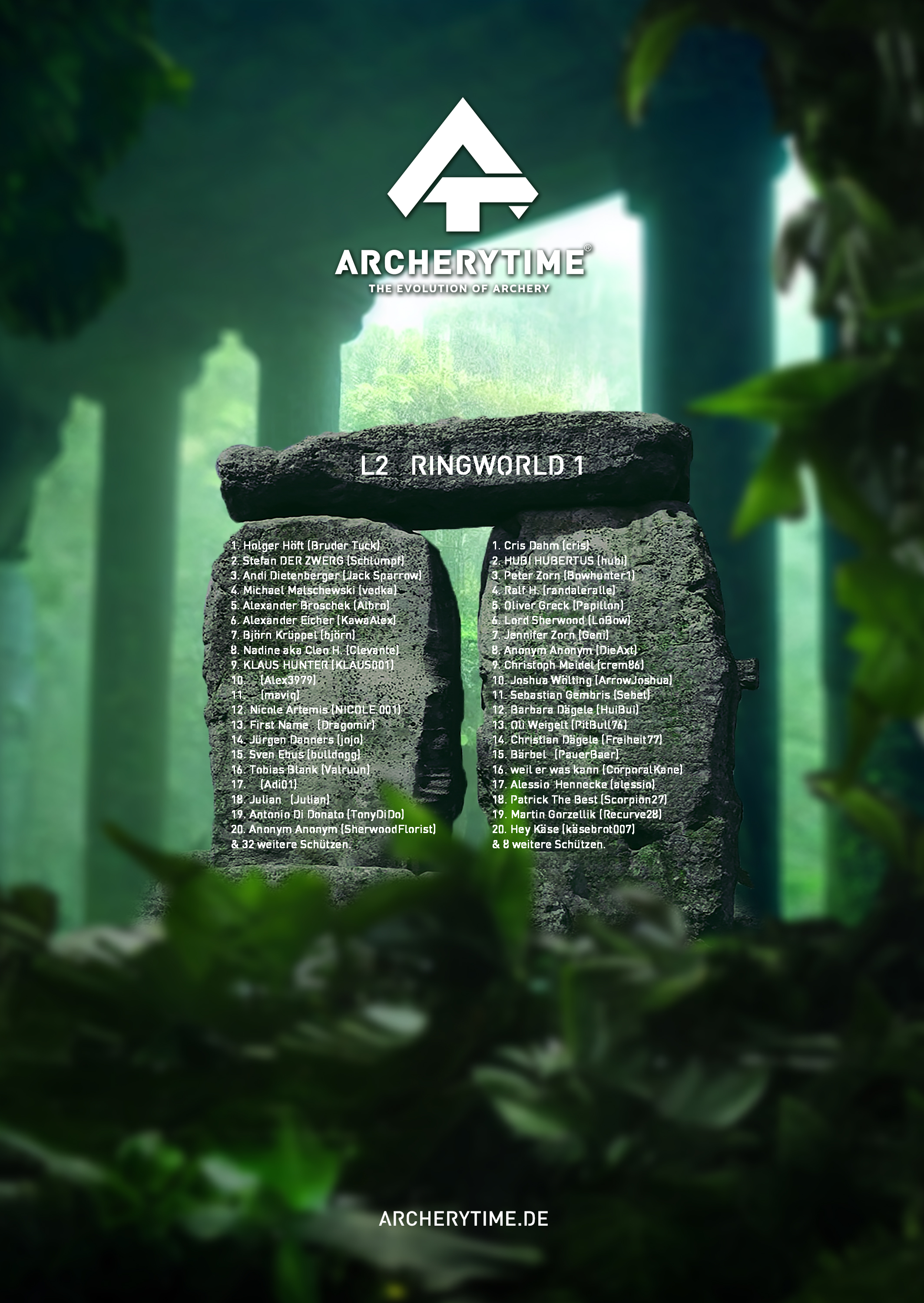Gleich einem alten Artefakt aus vergangenen Tagen, zeigt das Poster in monumentaler Schönheit die 20 besten Bogenschützen, die je das Legend Turnier bestanden haben. In steinernen Schriftzügen sind ihre Namen und Siege verewigt und erzählen von unvorstellbaren Kämpfen und unglaublichen Leistungen.