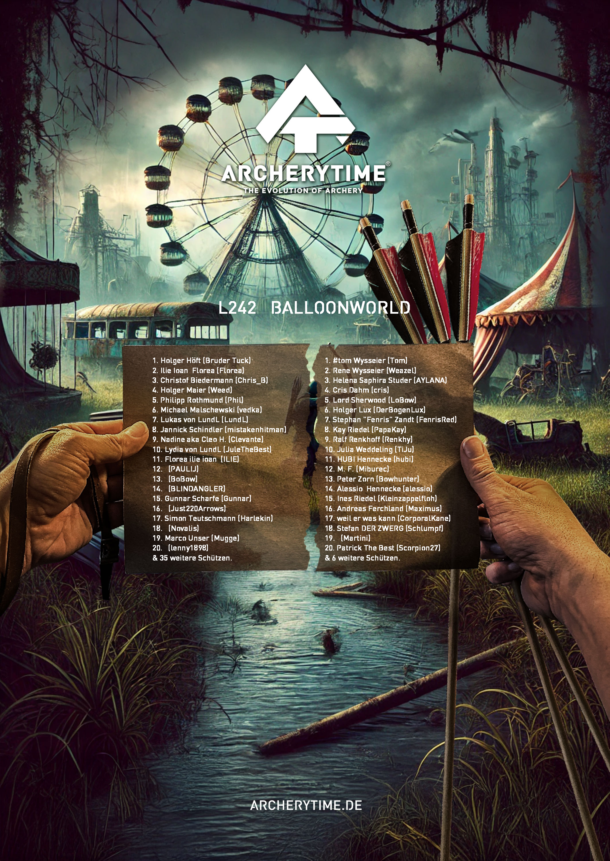 Gleich einem alten Artefakt aus vergangenen Tagen, zeigt das Poster in monumentaler Schönheit die 20 besten Bogenschützen, die je das Legend Turnier bestanden haben. In steinernen Schriftzügen sind ihre Namen und Siege verewigt und erzählen von unvorstellbaren Kämpfen und unglaublichen Leistungen.