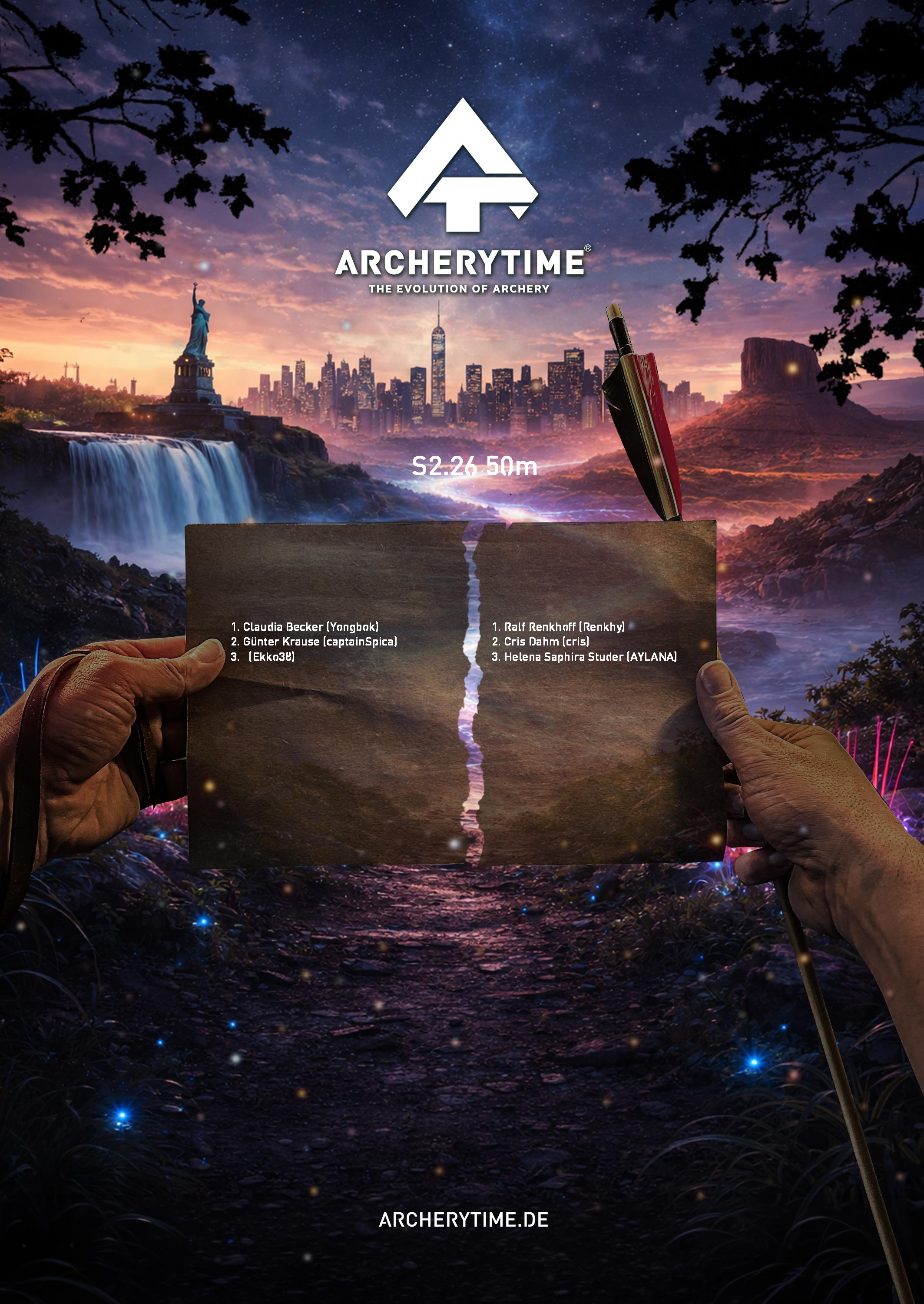 This poster showcases the top 20 archers who conquered the Legend tournament. Their names and scores are immortalized in stone – a tribute to skill, dedication and the spirit of archery.